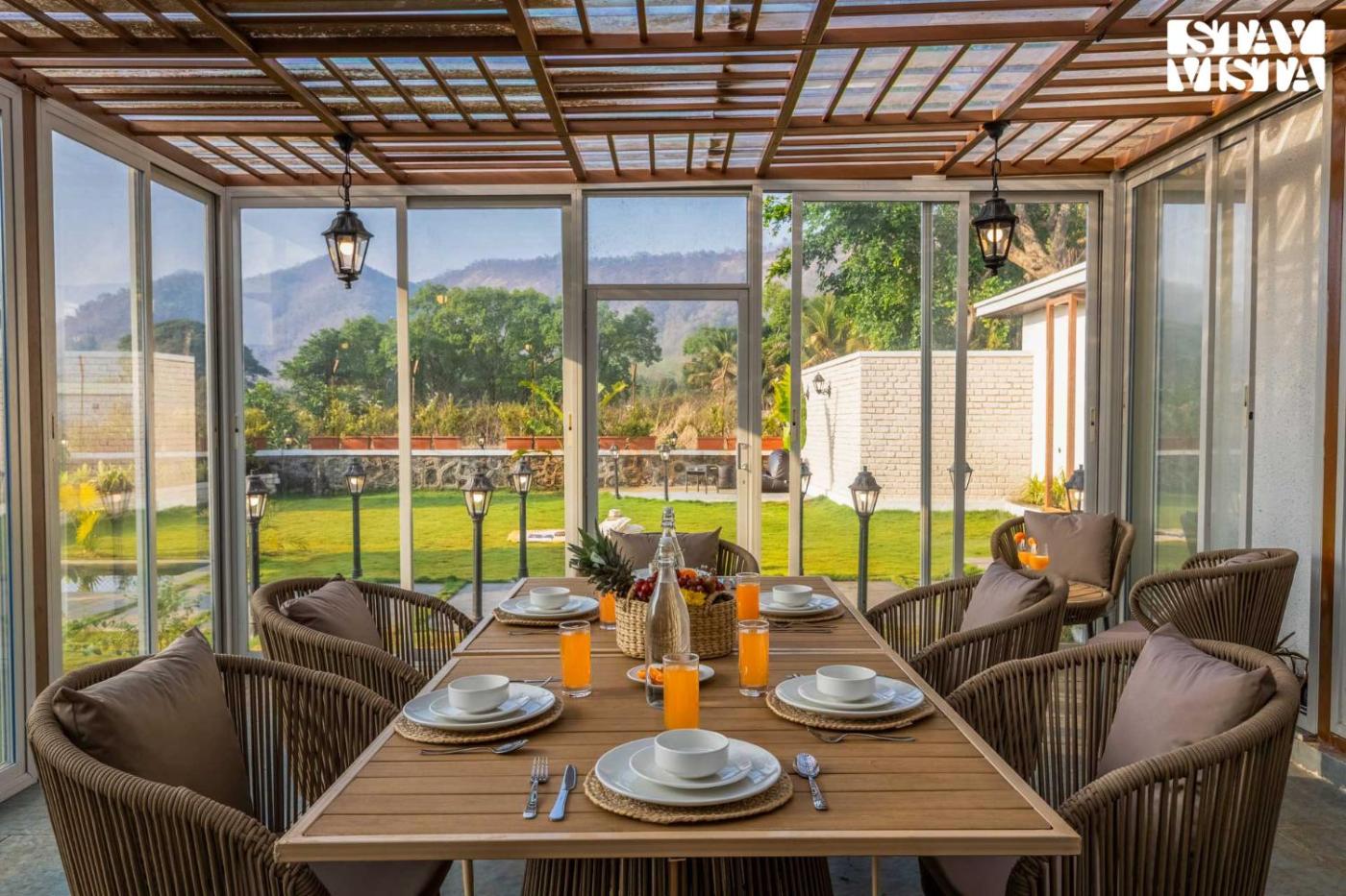 Situated in Karjat, 47 km from Utsav Chowk, StayVista at The Five Oaks - Private Pool Cottages features accommodation with an outdoor swimming pool, free private parking, a garden and a bar. Located around 11 km from Karjat Railway Station, the resort with free WiFi is also 17 km away from Bhivpuri Waterfalls. The property is non-smoking and is48 km from Kharghar Railway Station.